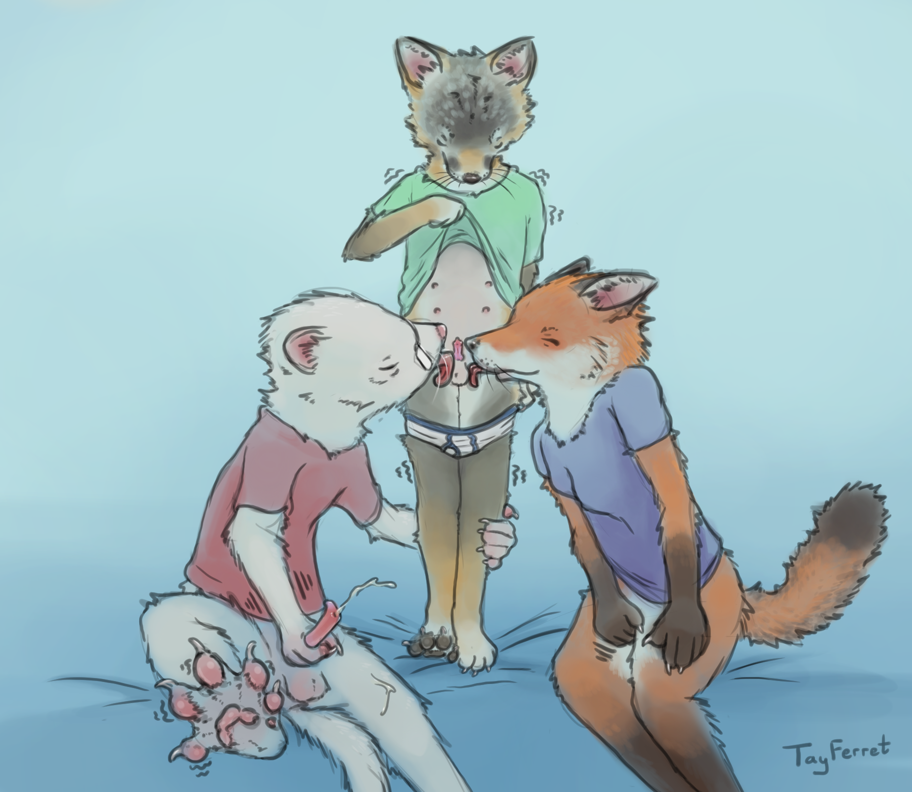Fay the Fox and I are making sure Tom the Fox has been keeping his sheath clean.