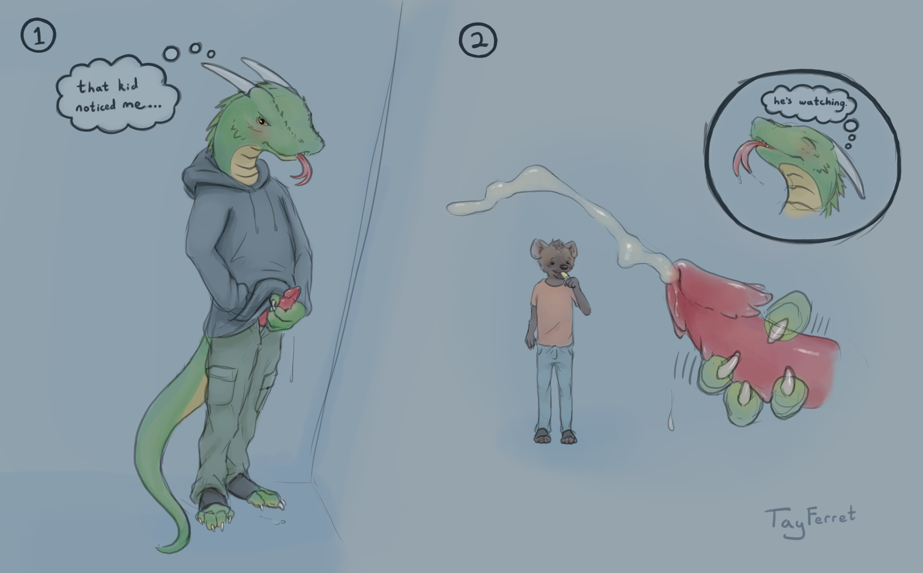 He was spotted by a curious cub who got a private performance. :3